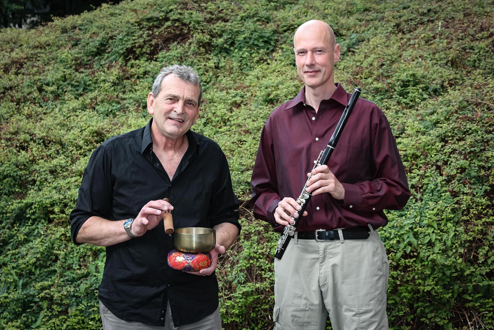 Musik der Stille INSEL Konzert Samstag // 28. März 2026 / 19:30 Uhr Ein Konzert mit intuitiver Musik // Rainer Sträßer / Dieter Weische Viele Menschen suchen verstärkt nach Orten der Ruhe und Besinnung. Mit ihrer intuitiven Musik laden die beiden Musiker Rainer Sträßer und Dieter Weische die Konzertbesucher*innen in wohltuende Klangwelten ein. In unserem immer schneller werdenden Alltagsleben möchte das Konzert Einkehr und innere Ruhe, ein wenig "Entschleunigung" schenken. v.l. // Rainer Sträßer / Dieter Weische / Foto © Ensemble Tickets kaufen Der Klangkünstler Rainer Sträßer lässt seine Musik intuitiv im Raum entstehen. Die obertonreichen Klänge laden zum intensiven Zuhören ein und haben meditativen Charakter. Zum Klingen kommen eine Vielzahl an Gongs, Klangschalen, Klangdreiecke sowie Psalter, Kalimba und minimalistisch eingesetzte elektronische Klangerzeuger. Der Flötist Dieter Weische nimmt die Zuhörer*innen mittels verschiedener Flöten, wie der japanischen Bambusflöte Shakuhachi, der indischen Bambusflöte Bansuri und der klassischen Querflöte mit auf eine Reise in sphärische und teils asiatische Klangwelten. Mehr Informationen Website von Dieter Weische INSEL Konzert Samstag // 28. März 2026 / 19:30 Uhr Musik der Stille Ein Konzert mit intuitiver Musik Einlass / 19:00 Uhr Eintrittspreis Vorverkauf // EUR 12.00 pro Person / EUR 6.00 erm. Abendkasse // EUR 14.00 pro Person / EUR 8.00 erm. Tickets kaufen 2 TAGs: KonzertINSELWuppertalQuerflöteKlangweltenElektronikklängeStilleBesinnungMuiskRuheGongsKlangschalenKlangdreieckePsalterKalimbaBambusflöteShakuhachiBansuriEntschleunigung